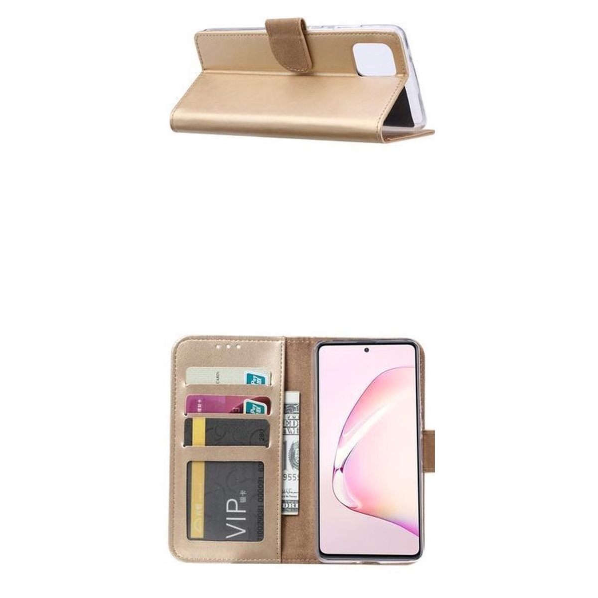 Telefoon Wallet Bookcase geschikt voor Samsung Galaxy A81-Portemonnee telefoonhoesje voor Bankpassen-Kunstleer-Siliconen Houder-Magnetische sluiten- goud