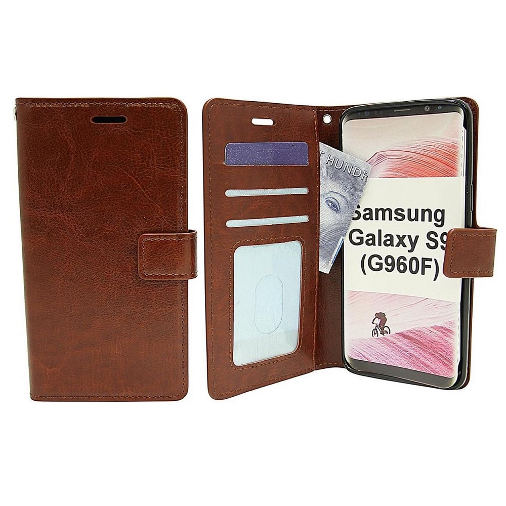Telefoon Wallet Bookcase geschikt voor Samsung Galaxy S9 – Portemonnee telefoonhoesje voor Bankpassen – Kunstleer – Siliconen Houder – Magnetische sluiten – Bruin
