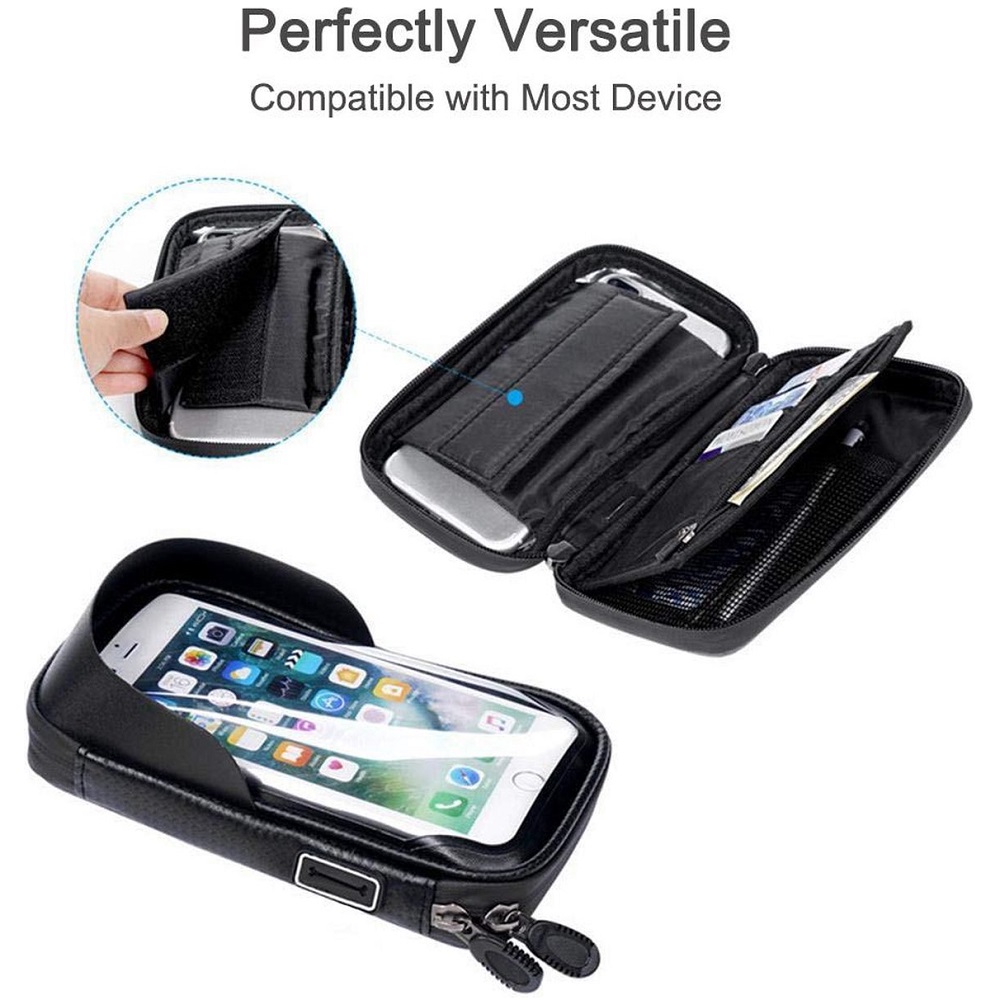 Een telefoonhouder moet tijdens het fietsen je mobiele telefoon goed vasthouden en ervoor zorgen dat de weersomstandigheden niet voor verhindering van je toestel zorgen. Vaak hebben normale houders een klem waar je met één hand de klem moet openen en met de ander de telefoon moet plaatsen. Maar met dit strakke design hoeft dat niet meer. Het enige wat je hoeft te doen is de rits van het hoesje open te maken. Of de weg egaal is of er snelheidsdrempel staat, je telefoon blijft op zijn plek.