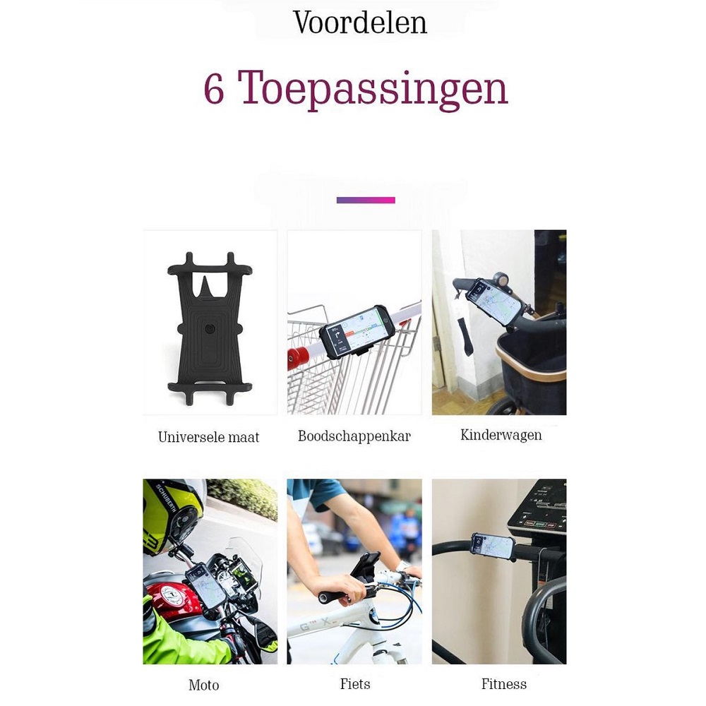 Heb je een smartphonehouder voor op de fiets nodig die je gemakkelijk kan gebruiken? Dan is deze fietshouder ideaal. Je kan het binnen enkele seconden installeren en vervolgens bij gebruik binnen enkele seconden je mobiele telefoon erin installeren. Wanneer je even bij de supermarkt uitstapt kan je de houder gemakkelijk verwijderen. En dankzij het flexibele materiaal en lichte gewicht kan je het makkelijk is je tas kwijt.