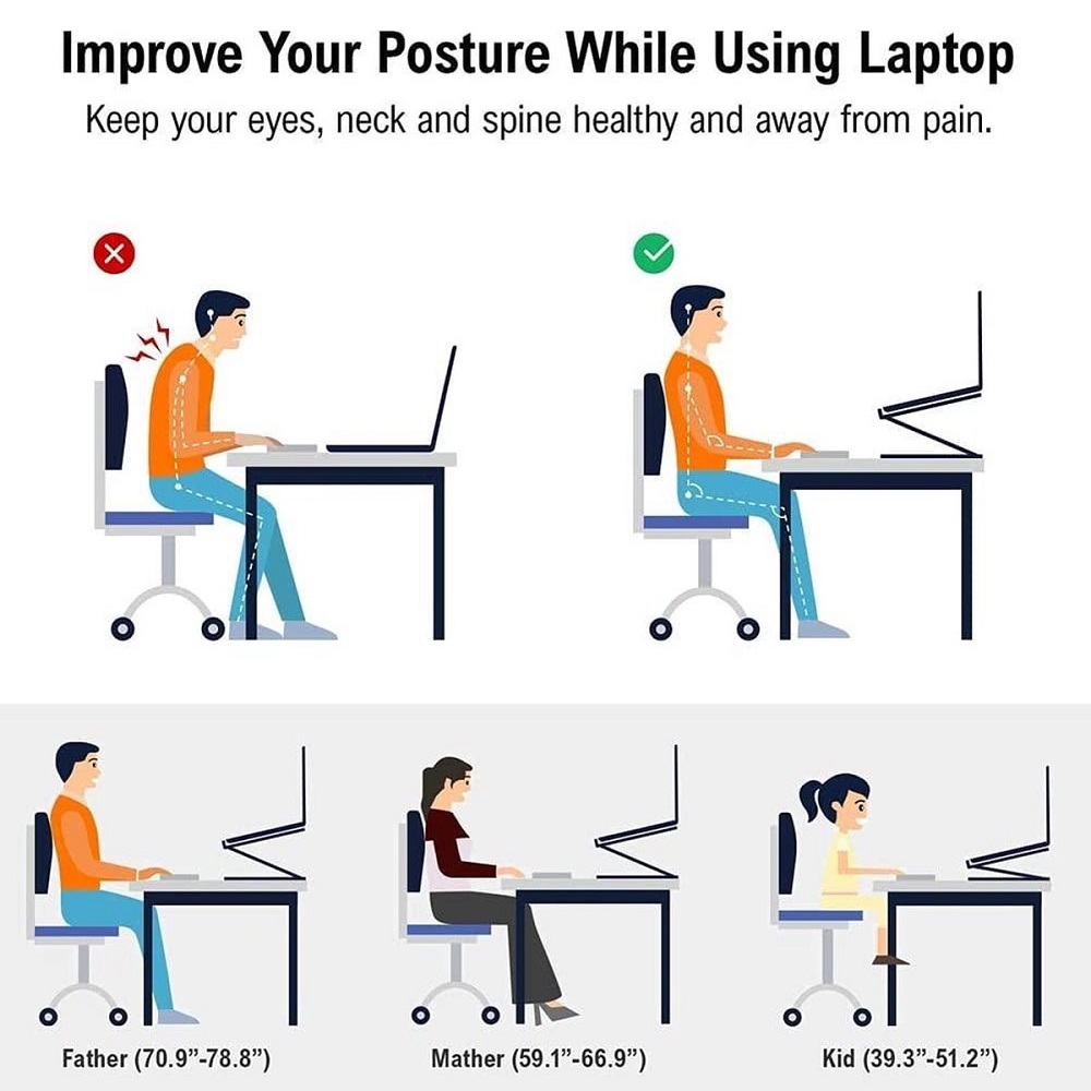 [Verstelbaar] De laptophouder kan dankzij de flexibele scharnieren op verschillende manieren worden afgesteld zodat je de perfecte kijkhoek krijgt.