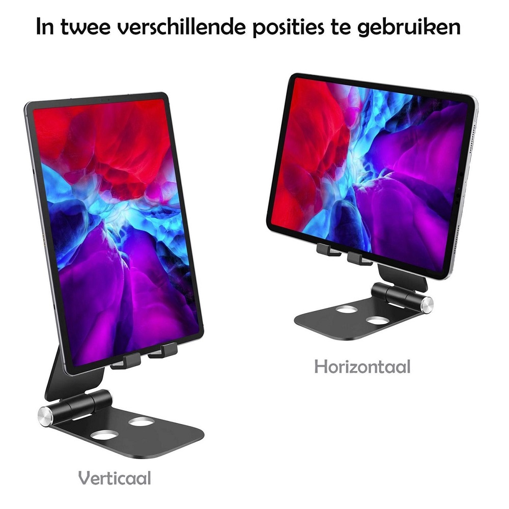 De telefoon- en/of tabletstandaard voor op je bureau kan in de gewenste manier afgesteld worden. Ook kan je het naar voren of achteren laten buigen tot en met 120 graden zodat je de perfect kijkhoek hebt. De telefoonhouder thuis is gemaakt van robuust en licht materiaal zodat het makkelijk mee te nemen is. De telefoonhouder heeft ook achterin gaten voor kabelmanagement. Zo kan je terwijl je gebruik maakt van je smartphone het tegelijkertijd ook opladen. De telefoonhouder is beschikbaar in meerdere kleuren en formaten.