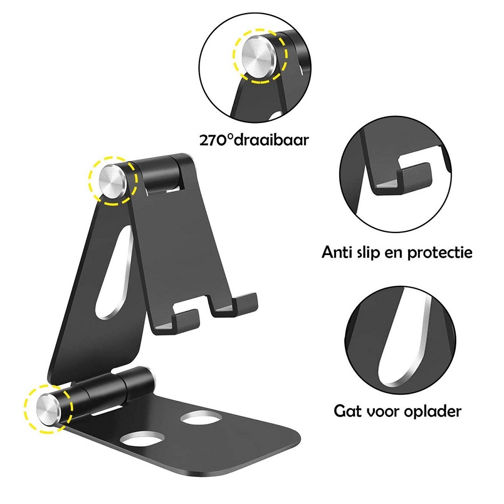 Tegenwoordig hebben we ons mobiele toestel bijna altijd naast ons liggen. Vaak gebruiken wij ons mobiele apparaat ook om filmpjes te bekijken of voor videogesprekken en presentaties. Zou het niet handig zijn om een standaard te hebben die je smartphone of tablet vasthoudt en ook nog eens er modern uitziet en mooi is afgewerkt. Een telefoonhouder thuis is een handige oplossing voor thuisgebruikers die graag hun smartphone in het zicht willen houden. De houder is compatibel met alle smartphone en tablets modellen en hebben een unieke ontwerp dat ideaal is voor gebruik op vlakke oppervlaktes zoals tafels en bureaus. Je kan hem ook blijven gebruiken met een telefoonhoesje om je telefoon. Het voordeel van een telefoonhouder is dat je hem gemakkelijk kunt verplaatsen. Je kunt hem naar de keuken meenemen om jouw kookvideo’s te bekijken of te videobellen met vrienden en familie. Ook heb je de optie om hem in te stellen voor handsfree bellen, streaming van jouw favoriete muziek of een filmavond. De telefoonhouders is gemaakt van duurzaam aluminium materiaal en heeft een goede stabiliteit waardoor je telefoon of tablet niet omvalt. Ook kan je het afstellen zoals jij dat wilt om de perfect kijkhoek te creëren.